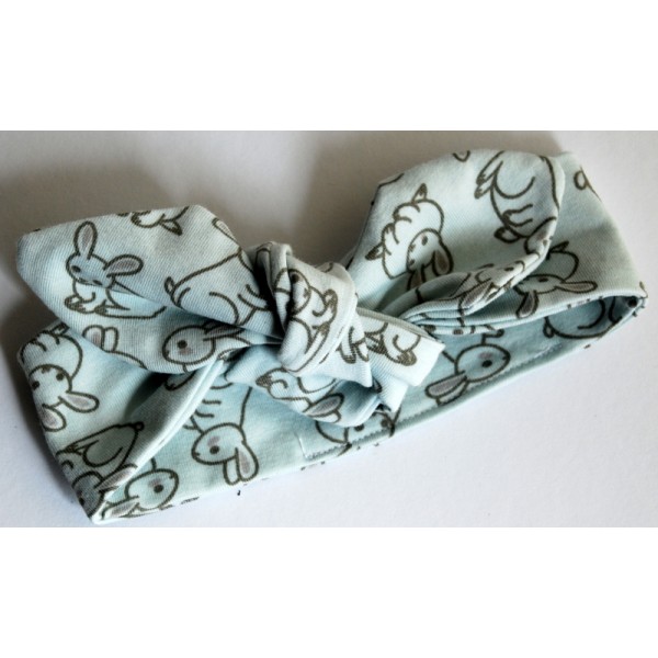 Elastische knoop haarband (67cm). Mintgroen met konijntjes.