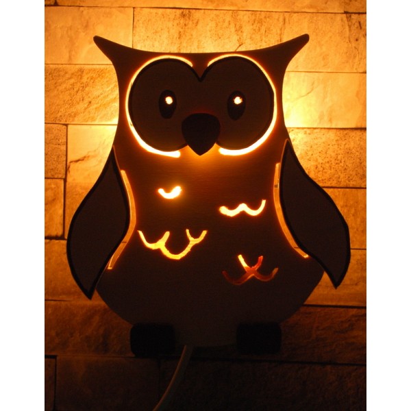 Houten lampje voor kinderkamer in de vorm van een uil.