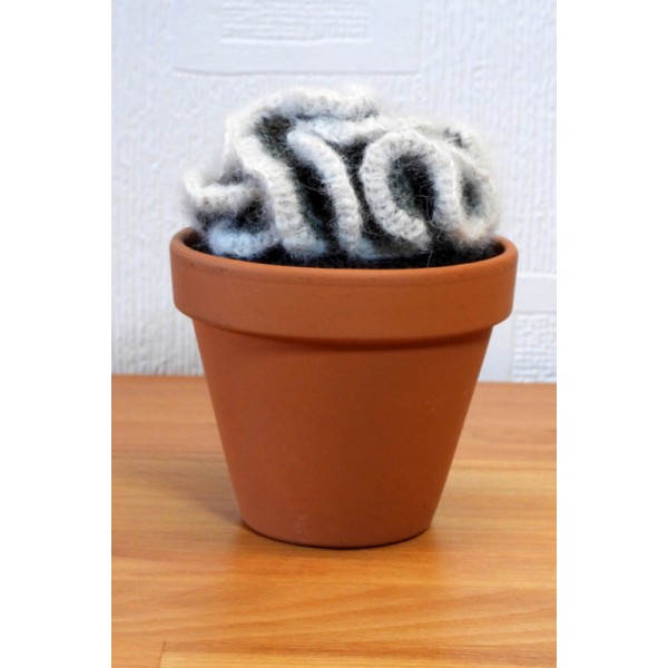 Gehaakte cactus in potje van 9 cm doorsnee.