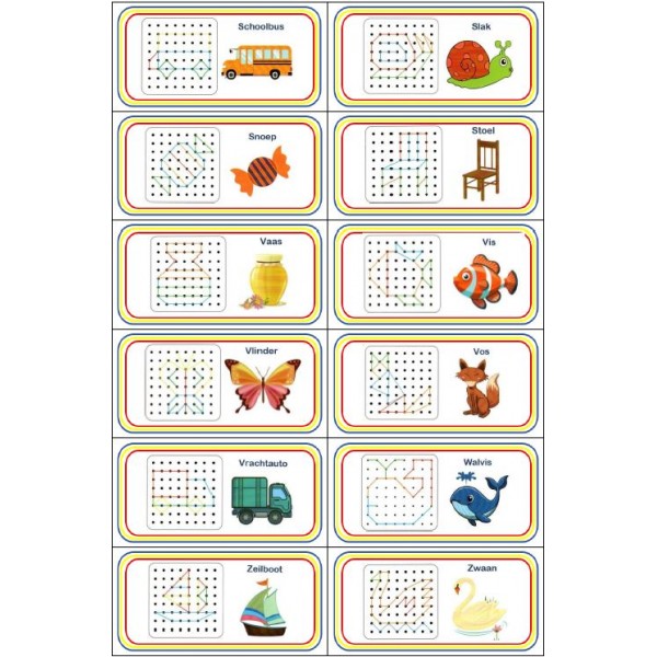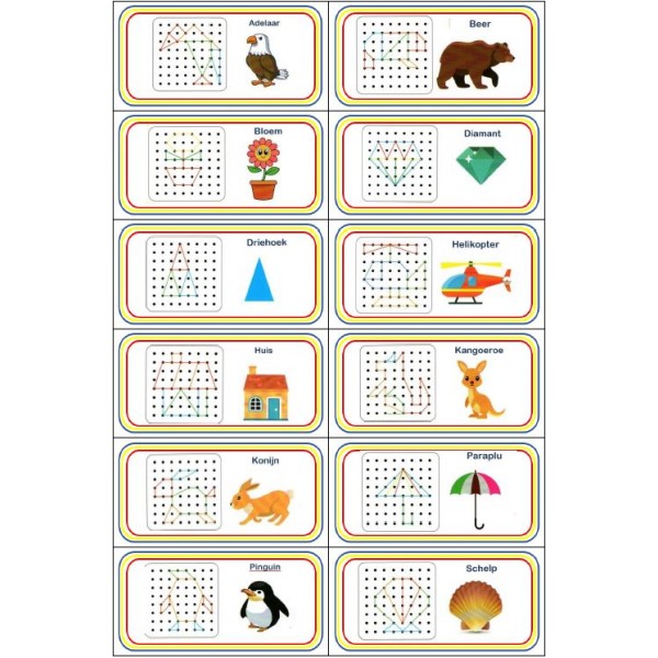 Met drie maten elastiekjes en 24 voorbeeldkaartjes.