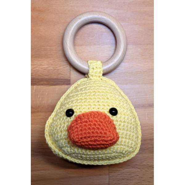 Bijtring met aap en boekje Appie de aap. De ring is van beukenhout.