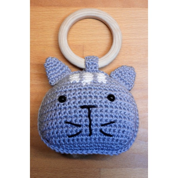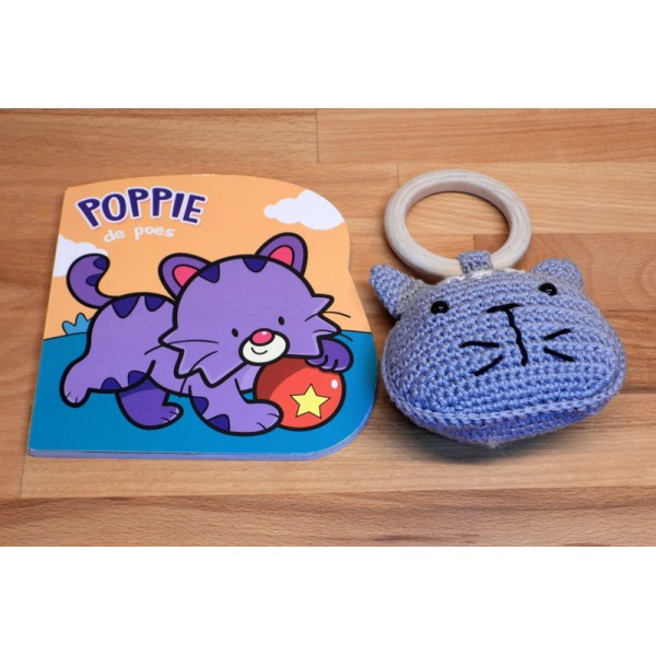 Bijtring met tijger en boekje Tim de tijger. De ring is van beukenhout.