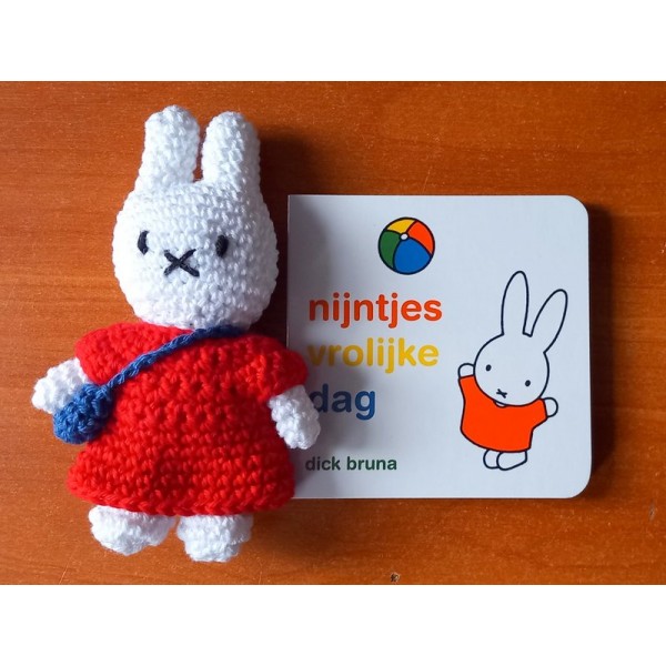Gehaakte eekhoorn, 20 bij 20 cm., samen met boekje "De bosdieren van Fiep".