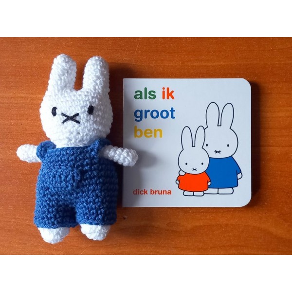 Gehaakt nijntje van 11cm. met boekje "NIjntjes vrolijke dag".