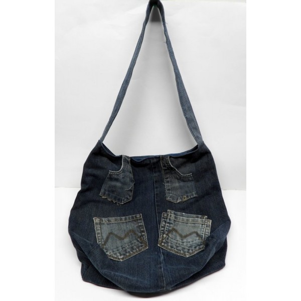Shopper van spijkerstof met diverse zakken op de buiten en binnenkant.