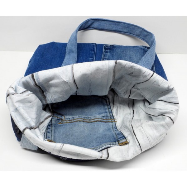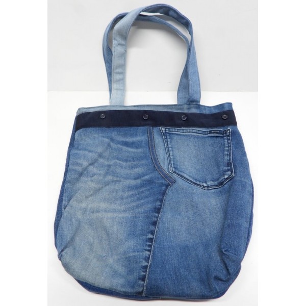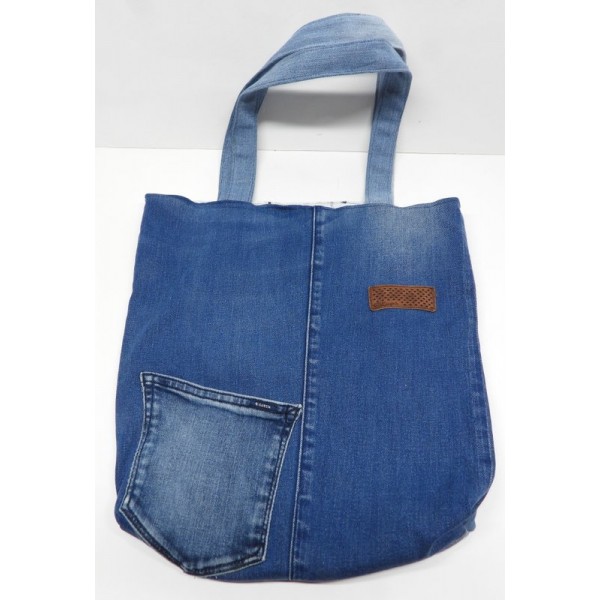 Tas van spijkerstof met 2 zakken op de buitenkant en 1 aan de binnenkant.