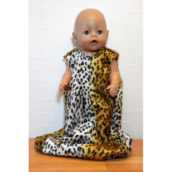 De slaapzak is gevoerd met oker gele stof en sluit met klittenband.