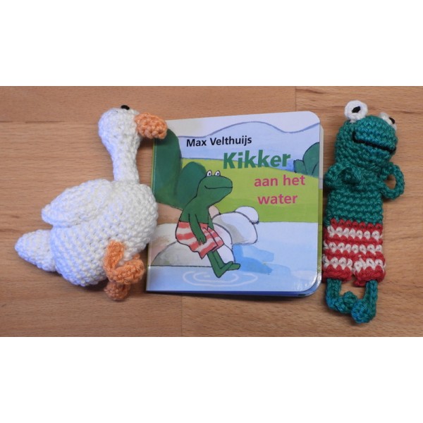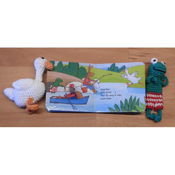 Kartonboekje met kikker en eend.